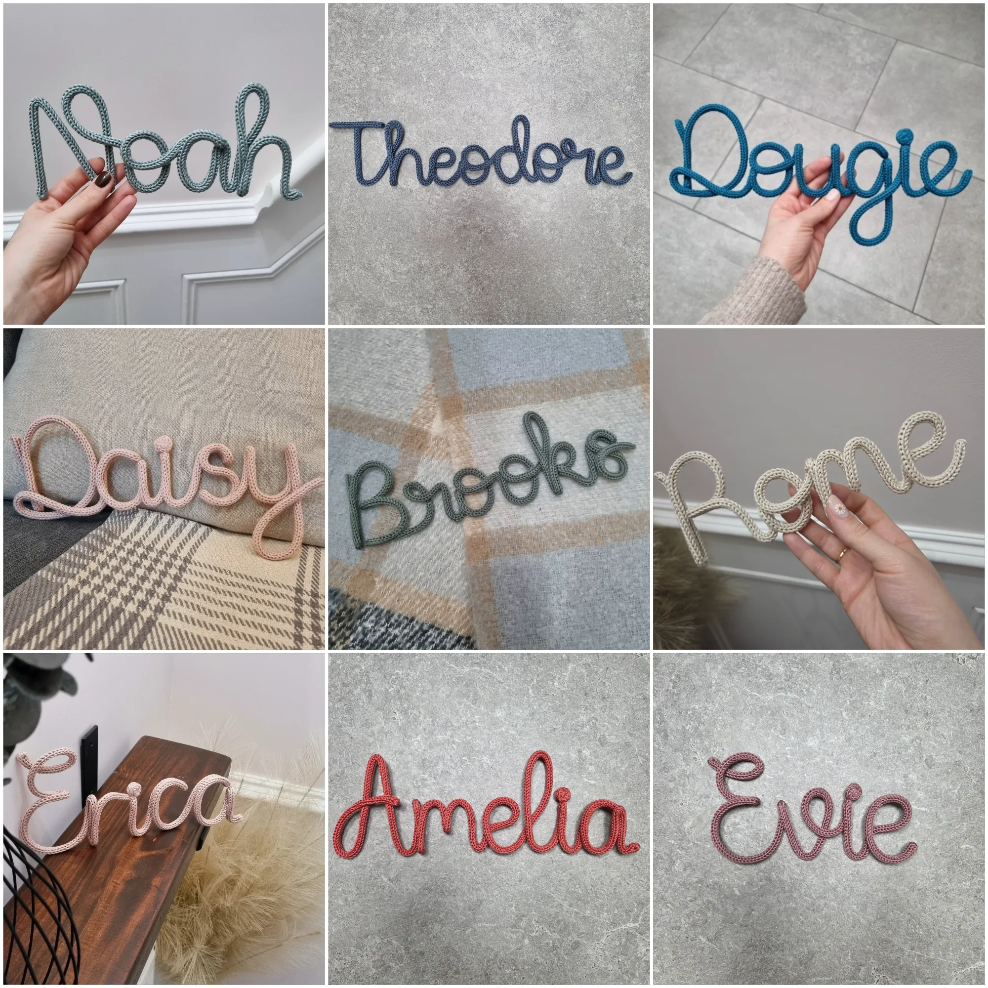 Handmade knitted wire words make a great gift and are the perfect addition to any child's nursery or playroom!